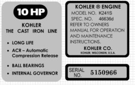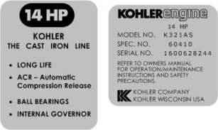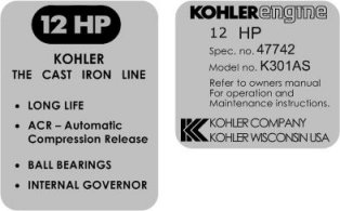 Kohler Engine Wheel Horse Engine decals